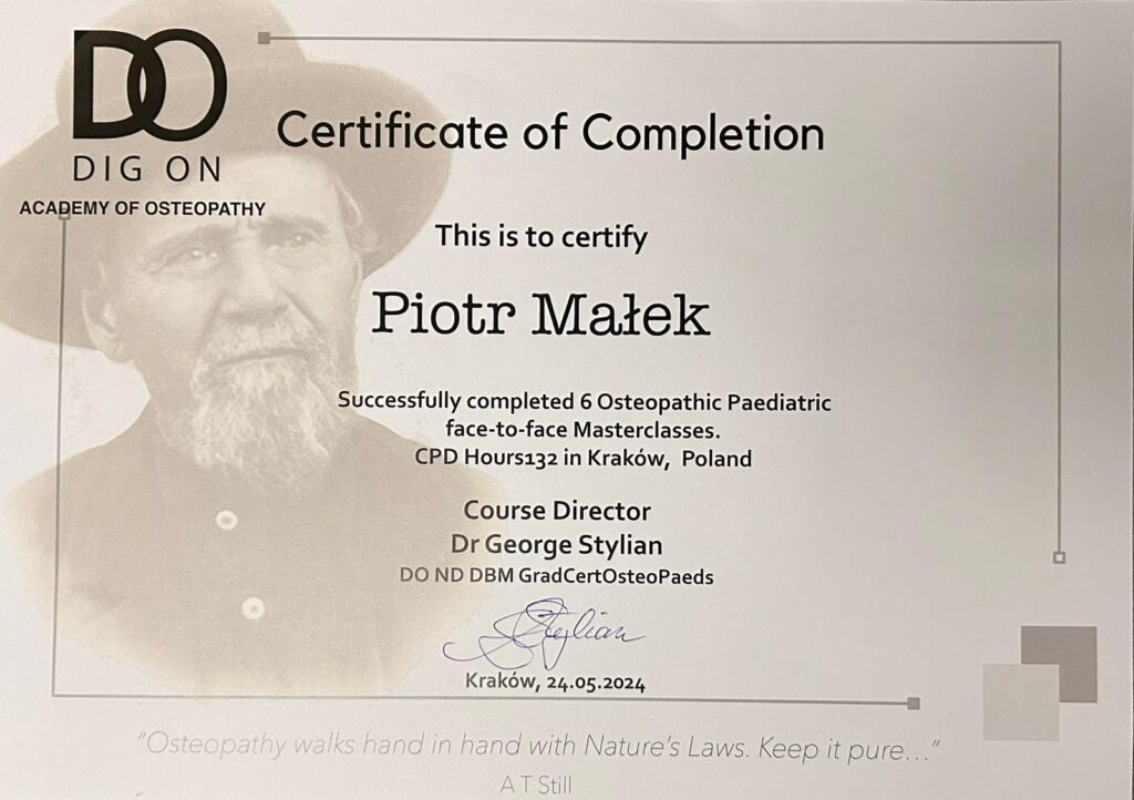2023 – Pediatria Osteopatycza: dr n.k.f. Jarosław Ciechomski D.O.